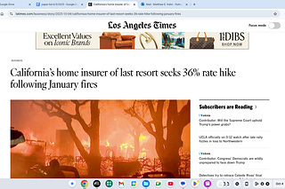 The Los Angeles Times reports that the California FAIR Plan seeks to sharply raise rates.