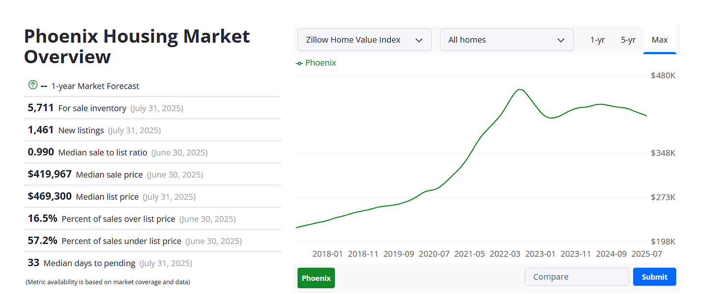First, here is a graph of the Zillow Phoenix Home price index from 2018 until now.