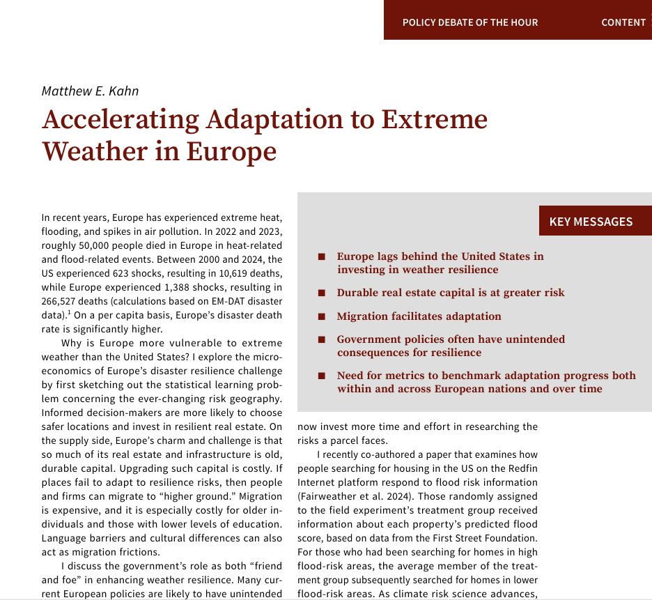 If European Cities believe that they will lose firms and footloose people and tourists if they fail to adapt to new weather conditions, then they will have a greater incentive to “raise their game” and make new investments. If Tourist Cities in Italy and Greece think that the Americans will keep visiting during hot Augusts then they are less likely to make these investments. Read my 2010 Climatopolis book to see an expanded discussion about how places compete to attract and retain economic activity and how this competition fuels resilience.