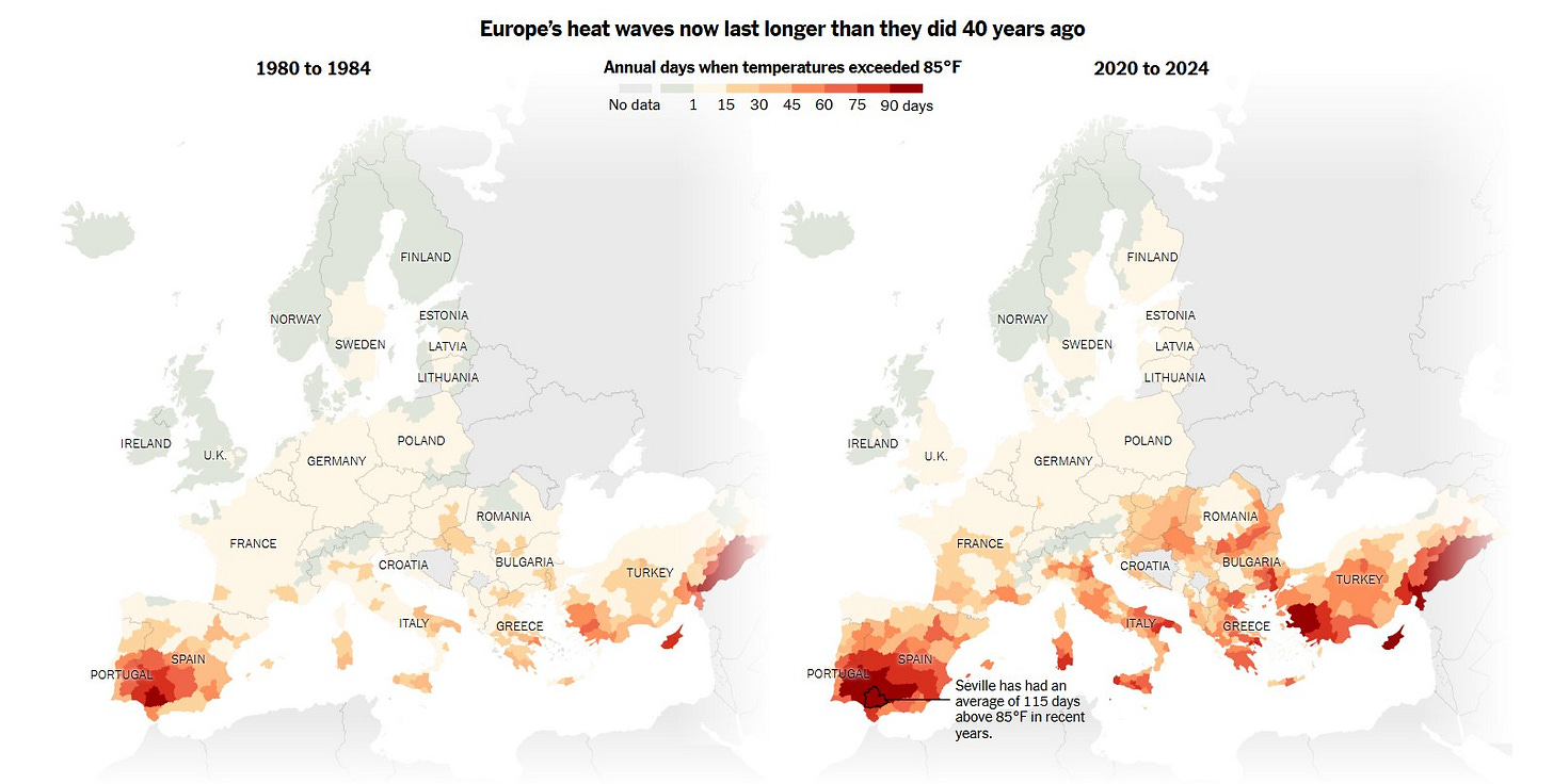 The New York Times has published a great map of Europe that highlights the geography of a warming continent.