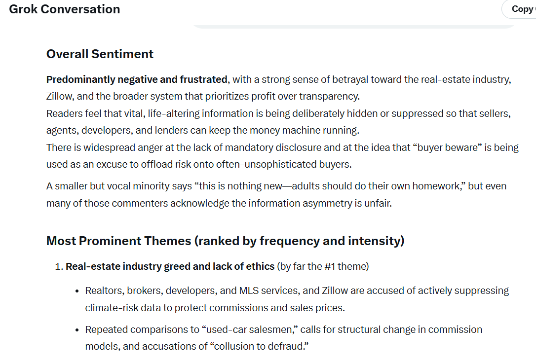 I love reading the comments posted to New York Times articles. I copied them and fed them to Grok and here is how Grok summarizes the comments.